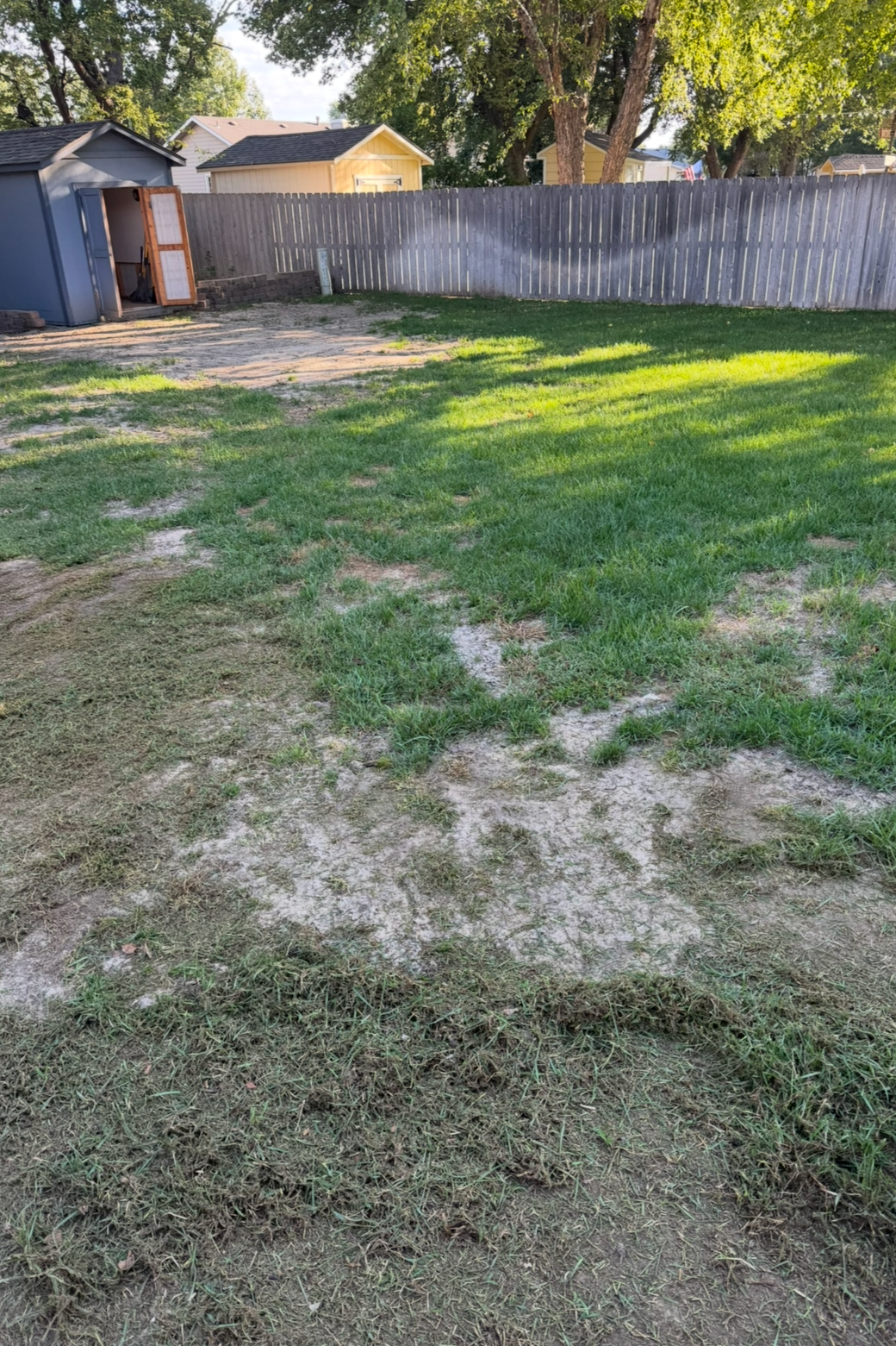 This lawn experienced severe damage from drought conditions, invasive weeds, and an armyworm infestation. After implementing a proper fertilizer and weed control program, along with aeration and overseeding, the lawn was restored to a lush, green, and weed-free condition!